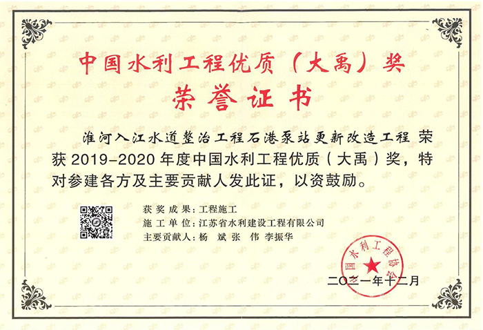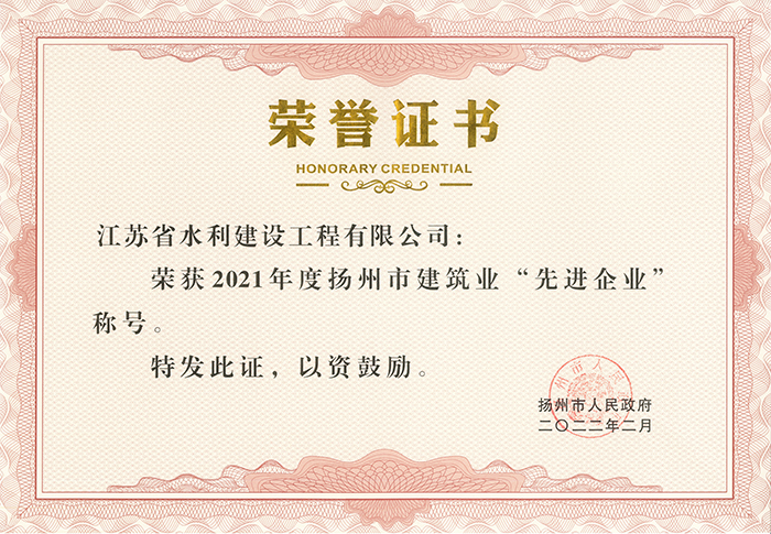 2022年度揚州市建筑業先進企業榮譽證書